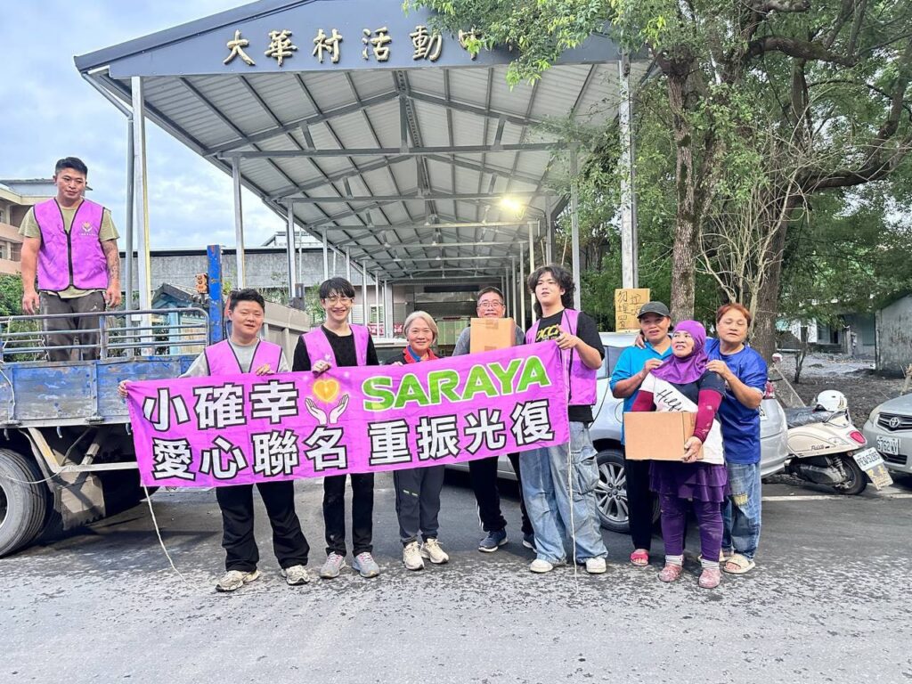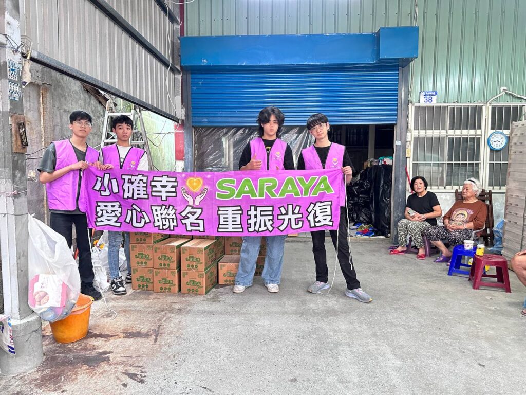 歷經一個多月的災後重建行動,小確幸愛心團隊與國際品牌SARAYA共同啟動「行動淨心.守護家園」公益聯名計畫。此次提供的消毒用品採用日本標準的安全消毒科技,兼具高效能與環保安全特性,由代理商依得生國際提供,並透過小確幸志工團隊發放至各據點。