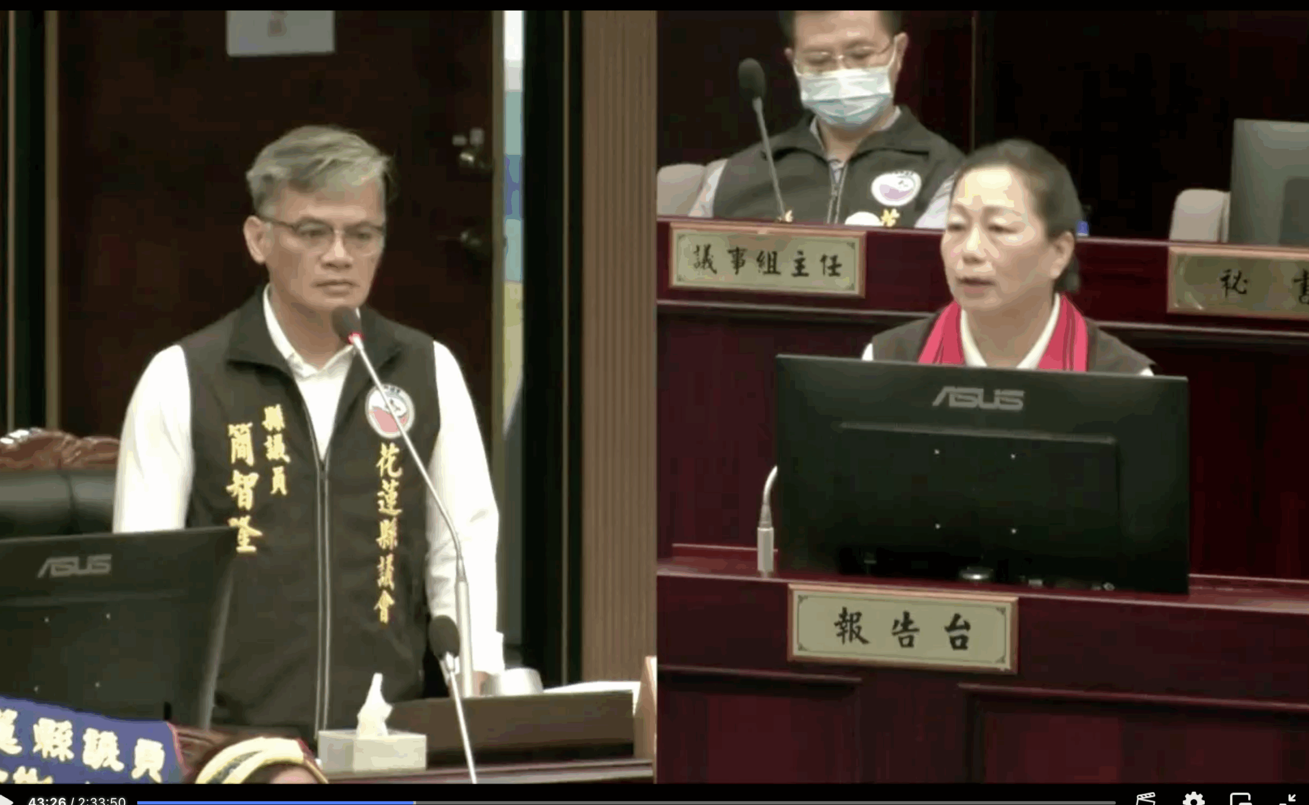 花蓮縣議會13日進行第20屆第六次定期大會總質詢,議員簡智隆將焦點集中於日前馬太鞍溪堰塞湖災情造成的重大傷亡事件,並公開要求縣長徐榛蔚以救災指揮官身分,向罹難及失蹤鄉親致歉。徐榛蔚表示,非常心痛,並強調「我們道歉,責無旁貸,將推動堰塞湖的法治化、標準化處理 」。