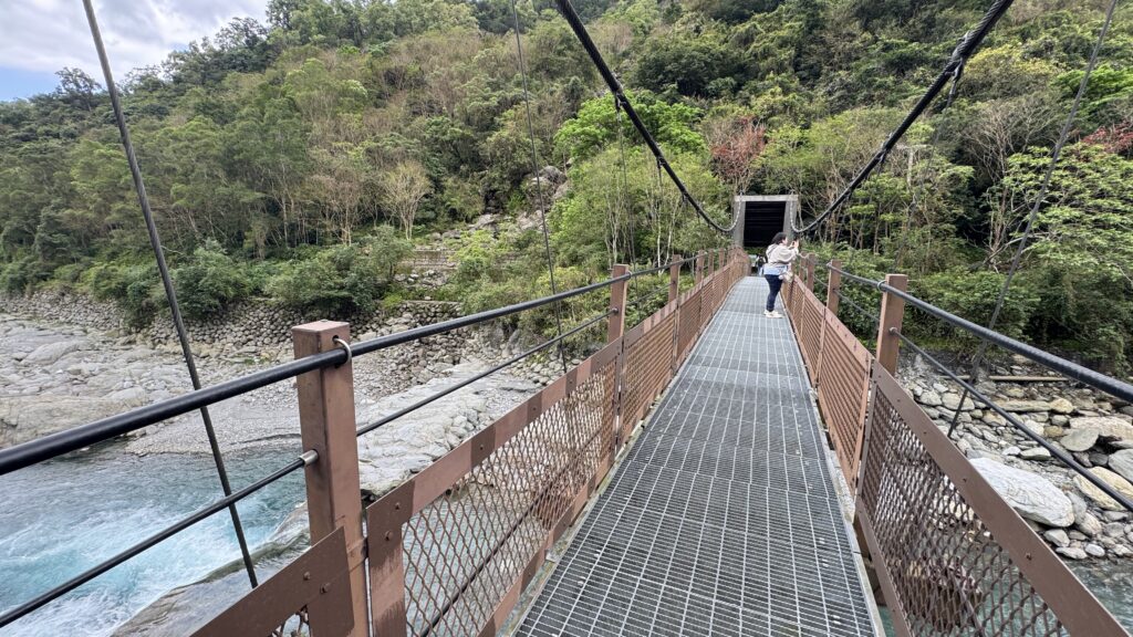 圖說:走在富源吊橋上可俯瞰湍急溪流,四周風景相當優美。