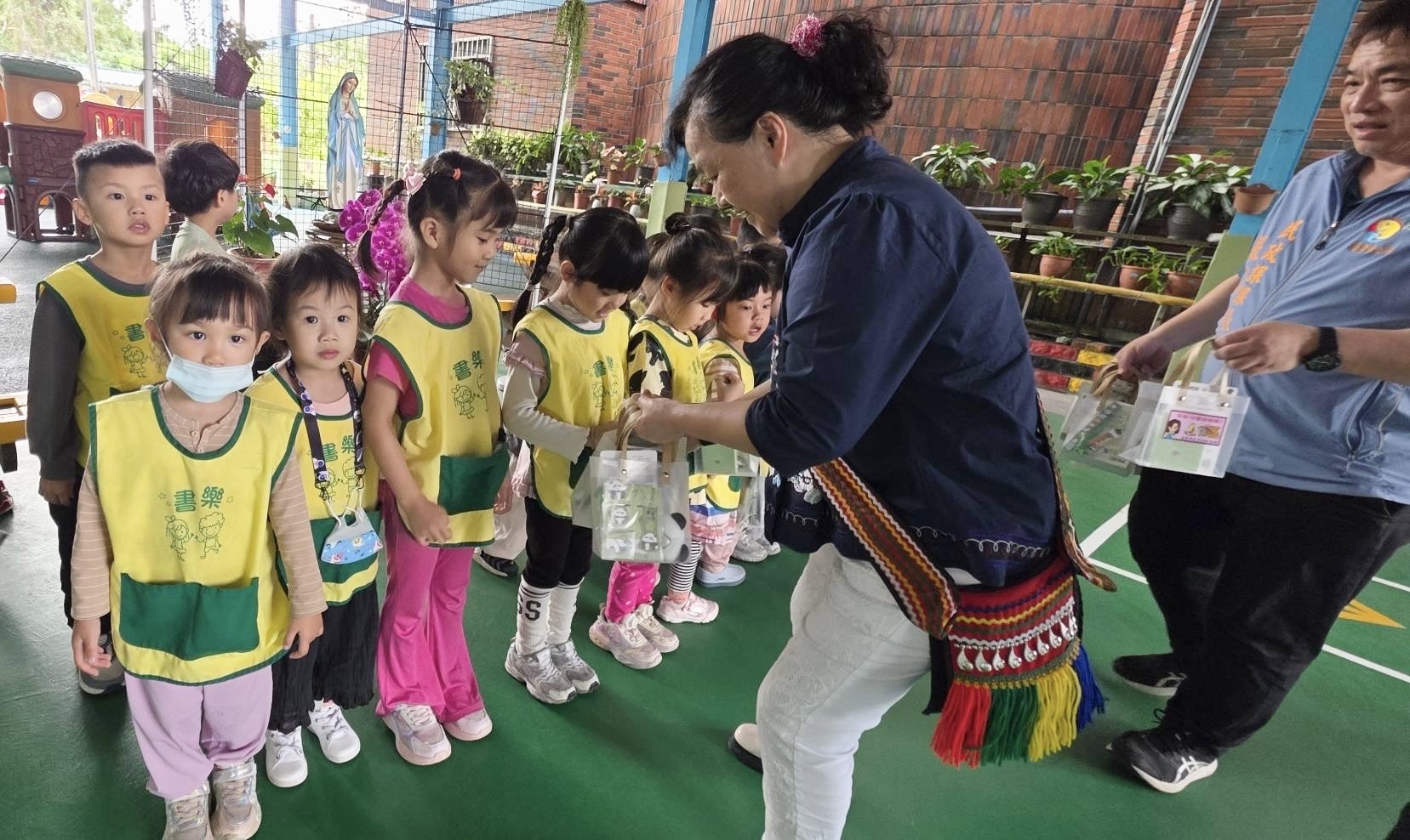 圖說:小朋友拿到壽豐鄉長曾淑懿(右二)親手送來的兒童節禮物都相當開心。