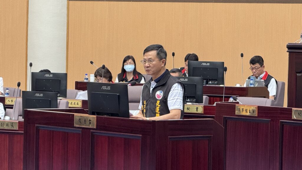圖說:花蓮縣議會28日召開第20屆第21次臨時大會,議會議室組主任潭進成說明27日由內政部常務次長吳堂安召集的「115年預算協商會議」決議內容。