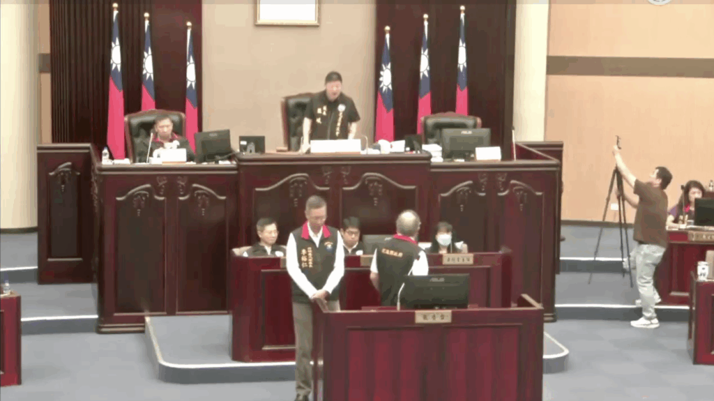 在質詢過程中,府會雙方言辭交鋒激烈。面對議員輪番質疑,縣府秘書長饒忠在答詢時態度強硬,強調預算審查有其法定時效,議會未排審即不符法律規範,需回歸「合法」程序。此番答詢引發議事堂氣氛緊繃,主持會議的議長張峻針對饒忠的「違法」說法一度拍桌表達強烈不滿。